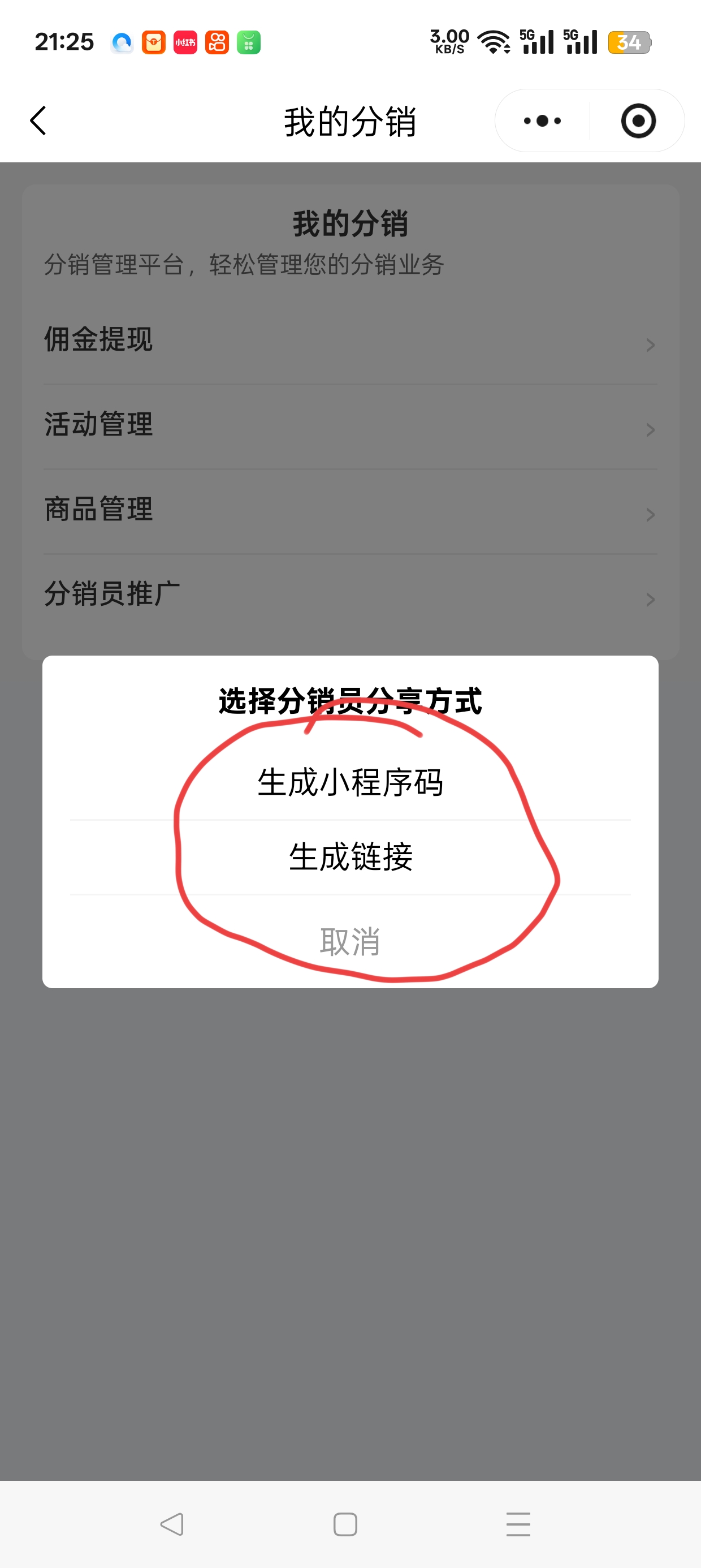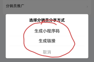 ② 通过“我的分销”——分销员推广——生成小程序码 / 生成链接转发。
