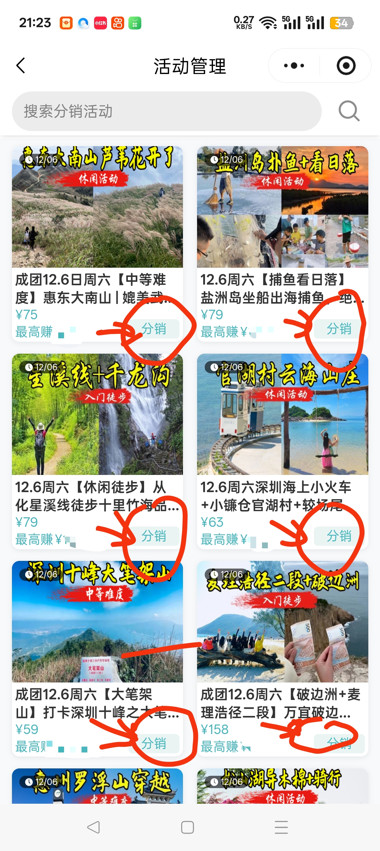 你的朋友 同事 网友想参加活动,把活动发给他(或群里)报名后你就有钱了,以后他自己从任何渠道进小程序报名你一样有佣金拿(永久锁粉),费用越高佣金越高。