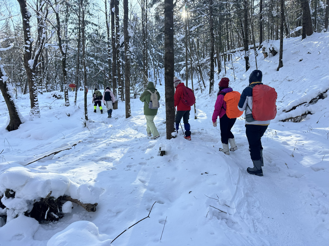 ● 脚踏轻巧保暖登山鞋/雪地靴/专业冲锋鞋+羊毛袜,也可以携带冰爪防滑;