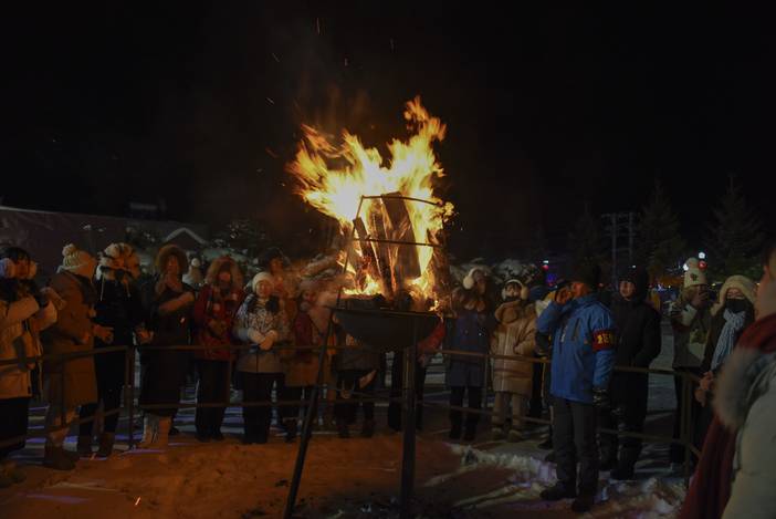 在大红灯笼的暖光下,住进漂亮的“雪蘑菇”