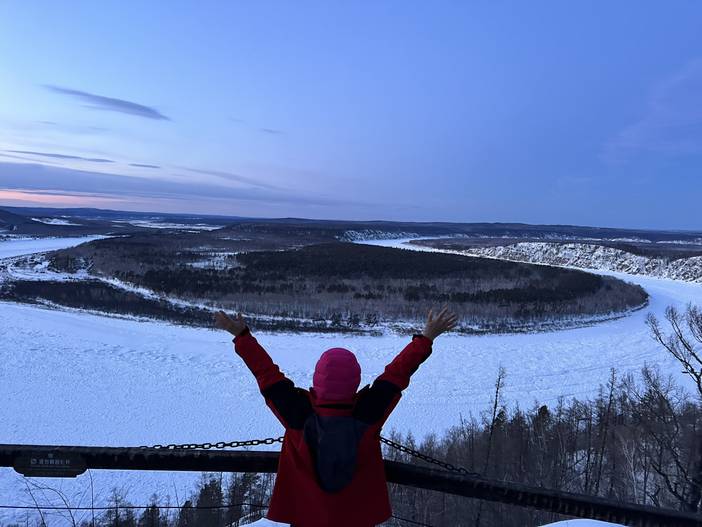 08:30驱车前往神州北极广场,我们徒步在北极村河边栈道,河的对岸就是俄罗斯。一路徒步打卡我找到北了、138号界碑、金鸡之冠等最北风景点。