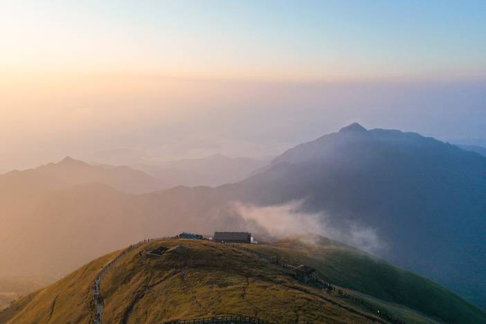 08:00 早餐后收拾好行装往发云界方向出发,一路经过吊马庄—观音宕露营区—发云界的千丈岩顶峰客栈。从金顶到发云界,绵绵20多公里高山草甸美景,足以让灵魂在天堂里飞舞。这一路,我们安排在发云界中间的千丈岩入住,让大家一路拍照过去,不留任何的遗憾,到达发云界千丈岩顶峰客栈,可以拍摄高山草原的日出日落。让大家再一次感受武功山高山草原的美!