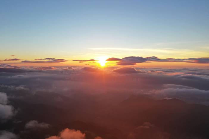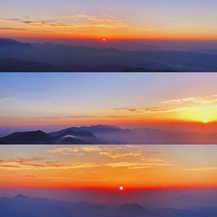 05:30 天亮了,起来看日出云海,武功山日出云海是今日精彩看点之一,早上天晴大概率可以看到日出,云海出现在雨后。可以徒步几分钟到达金顶制高点或者在客栈门口看日出。