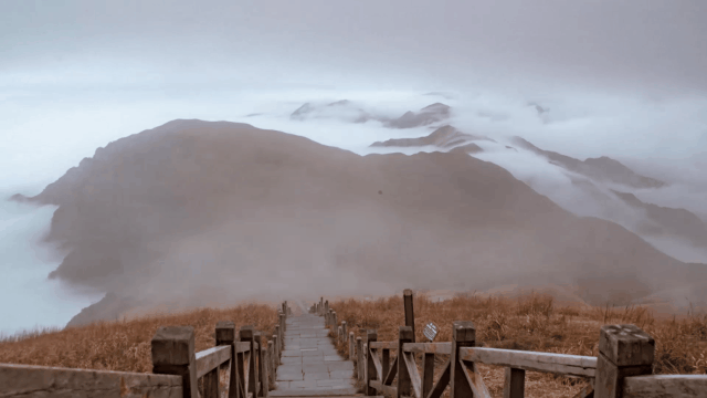 云雾在山峦间此起彼伏,好似丹青画卷,置身其中,飘然而立,给人一种远离喧嚣的世外之感。