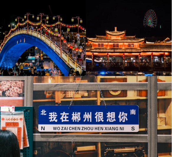 古街上,轻纱悬挂,红色灯笼点缀着古朴的青瓦屋檐,明清小镇的风韵跃然眼前。橘井药坊、嘉禾倒缸酒坊、玲珑茶坊、金贵银坊等郴州“老字号”齐聚瓦窑坪