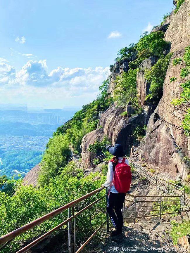 是园山风景区顶峰,海拔618米,是深圳的第七高峰。强烈推荐「一线天」,视野开阔,仿若顶峰的震撼之景,凭栏一眼,就能将横岗全貌尽收眼底。