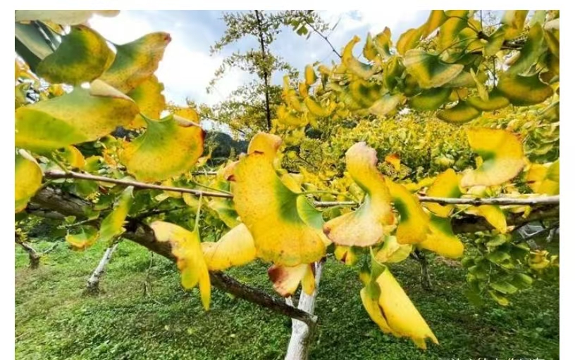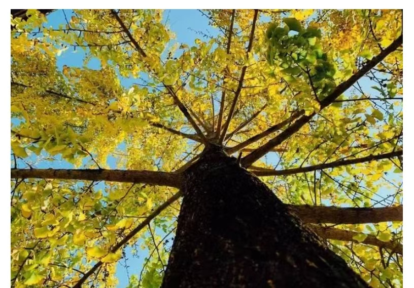 每到11月中下旬,灿黄的叶子爬上树梢,挂满枝头。