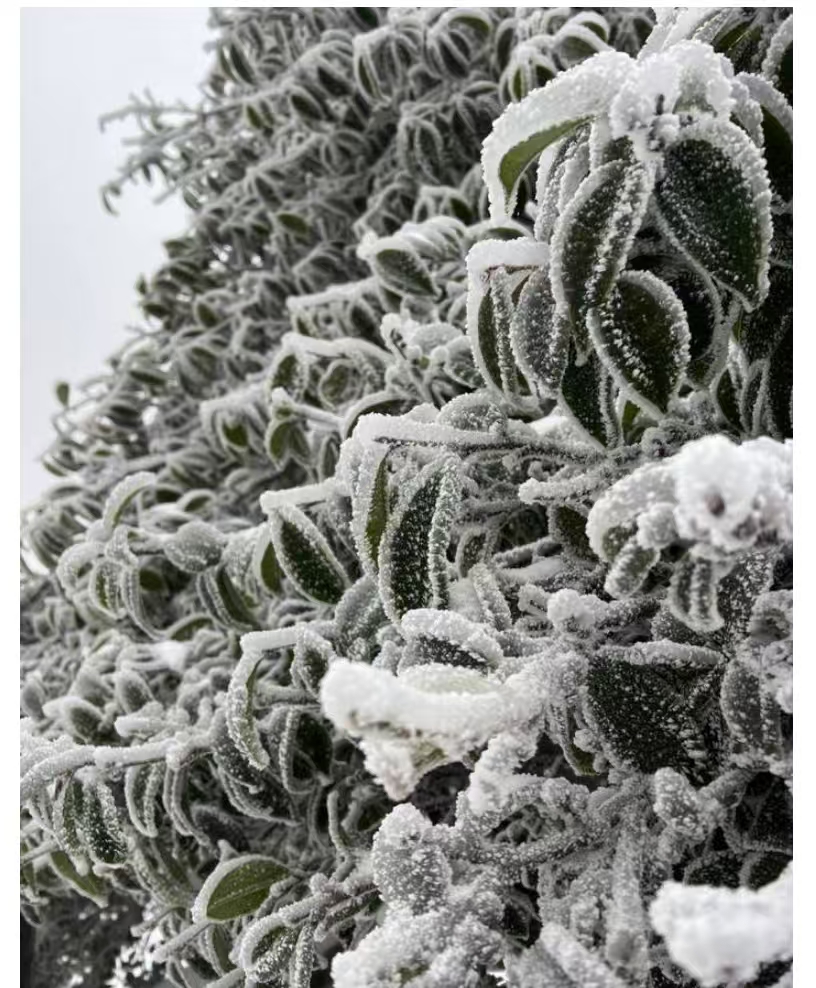 雾凇,俗称冰花、树挂等,是低温时空气中水汽直接凝华或过冷雾滴直接冻结在物体上的乳白色冰晶沉积物。