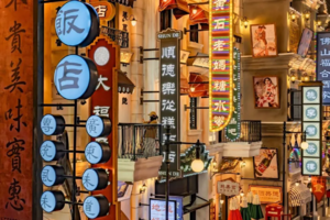 华盖路步行街,街道两旁为明末清初骑楼特色的岭南西洋建筑,