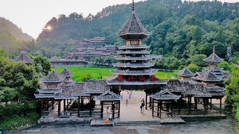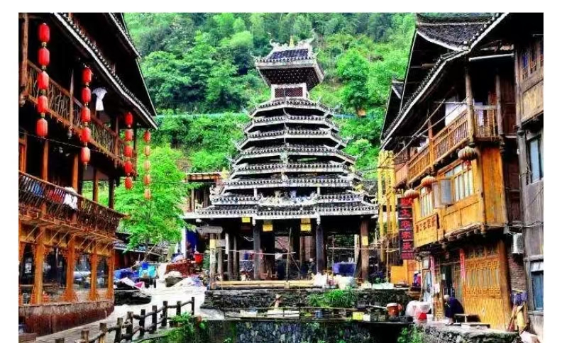 侗寨以鼓楼群最为著名,其鼓楼在全国侗寨中绝无仅有