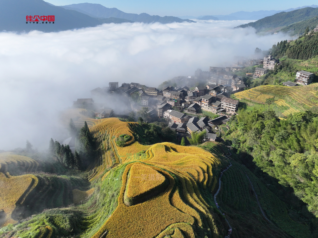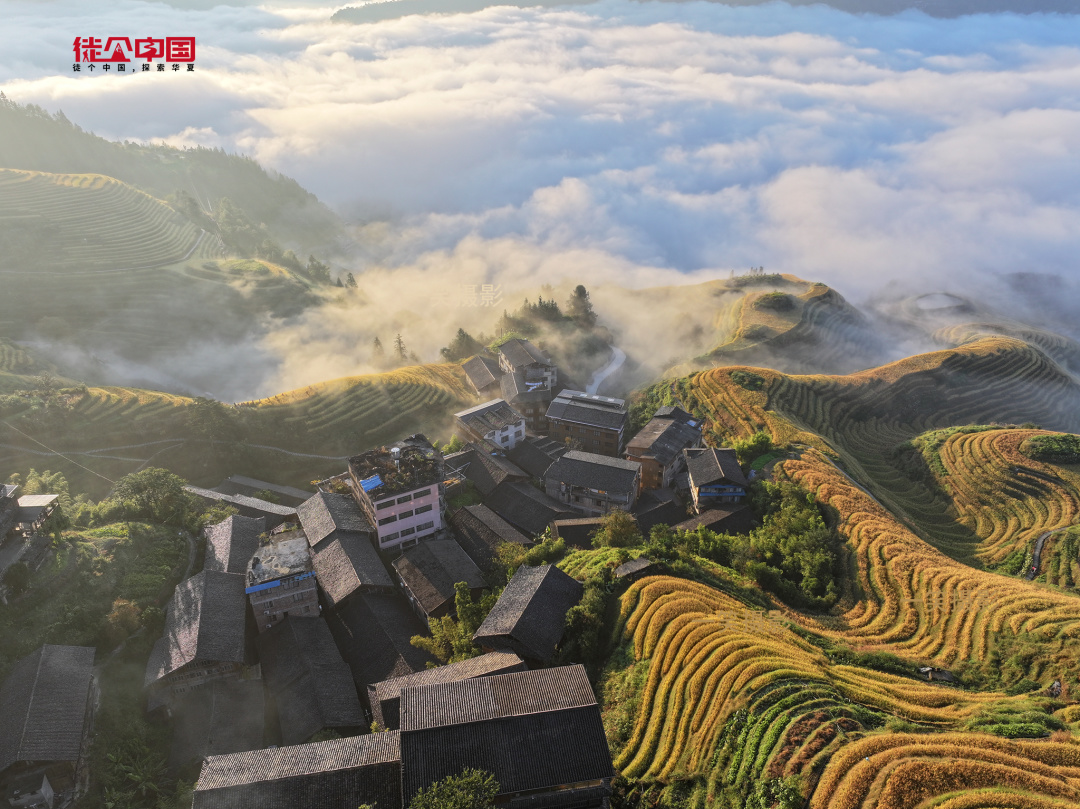 龙脊的秋在翻滚的金色稻浪里,当漫山遍野都被染上金黄色,白云环绕着木墙青瓦,让人难以忘怀的龙脊,有着难以言喻的诗情画意~