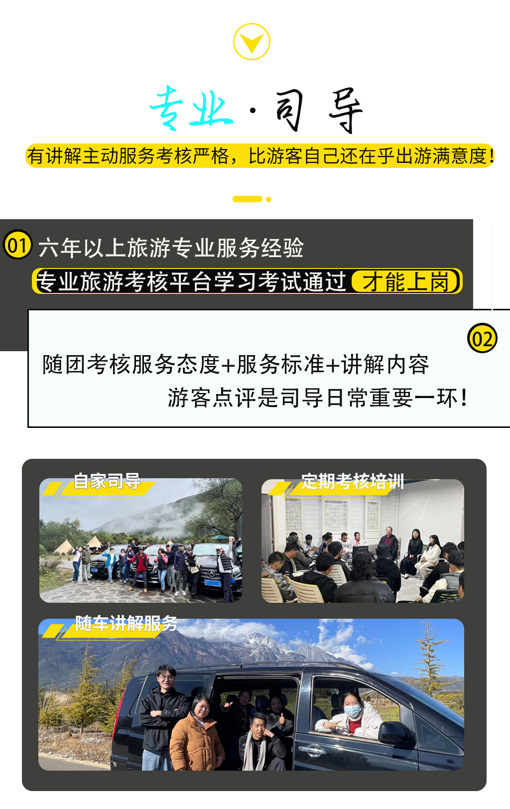 5、导游:司机兼向导,无导游(服务时间8:00-18:00),提供代办住宿代购门票等服务,自由活动期间无陪同。