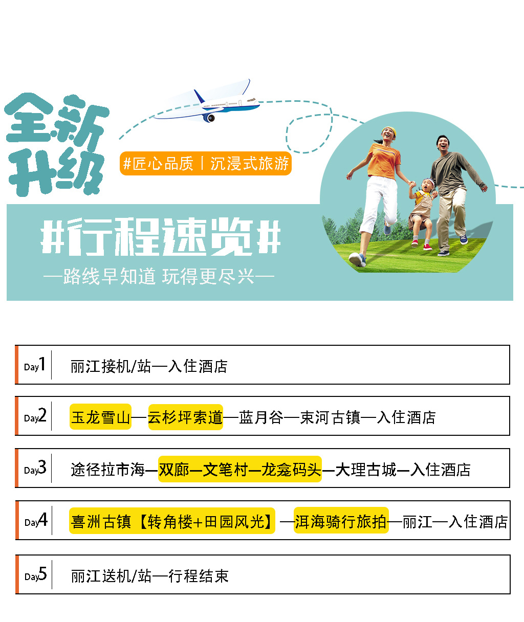 3、我们会根据交通工具离丽的时间,提前1-2个小时出发送您去机场或火车站,请您核对好航班起飞时间(列车发车时间),以免耽误您的行程。