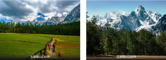 第二天:酒店早餐—根据天气安排观“玉龙雪山日照金山”—【玉龙雪山景区】—【云杉坪】—【蓝月谷】—【束河古镇】—晚餐(丽江纳西风味特色家常菜)—入住酒店。
