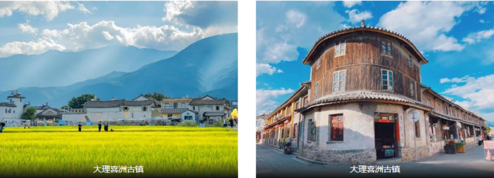 【喜洲古镇】(游玩约1个小时)喜洲是历史上白族商帮聚居的城镇,至今保存众多的完整的传统的白族民居,镇子的周围是大理的农田,蓝天白云,农田里作物茂盛加上白族民居外墙的映称,田园牧歌的美好场景立即跃入镜头,故成为当下大理的热门打卡点。