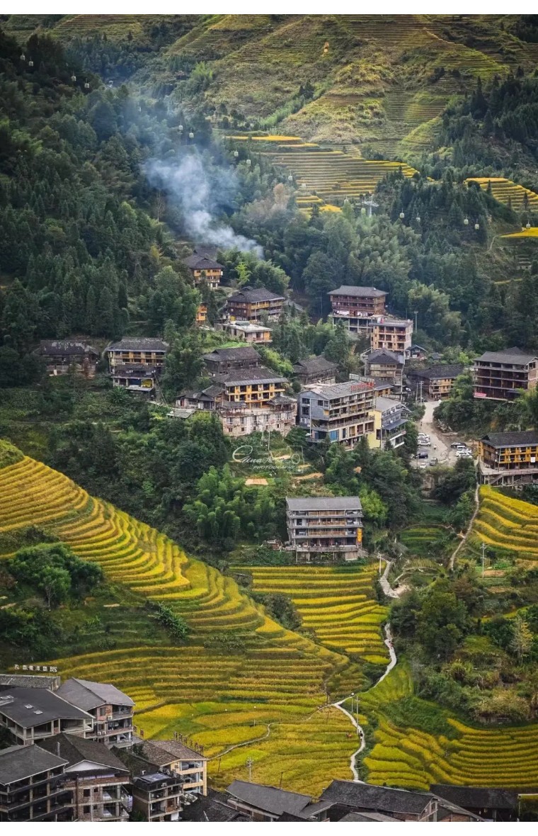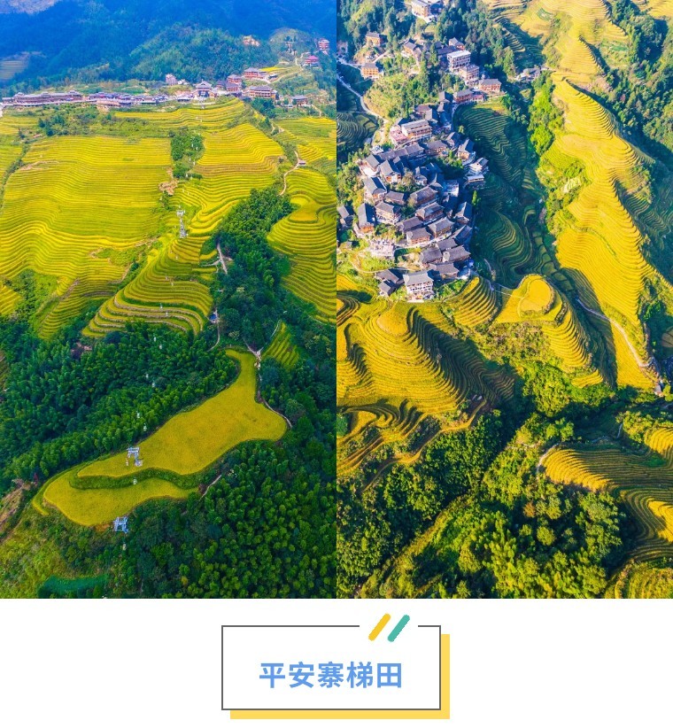 如 今这里也仍是龙脊梯田最原始规模最大的村寨,保存非常完整、古老、规模 较 大 的壮族干栏式吊脚木楼建筑群,步行石板路徒步至平安寨大概40分钟, 沿途可欣赏非常壮丽的美景!