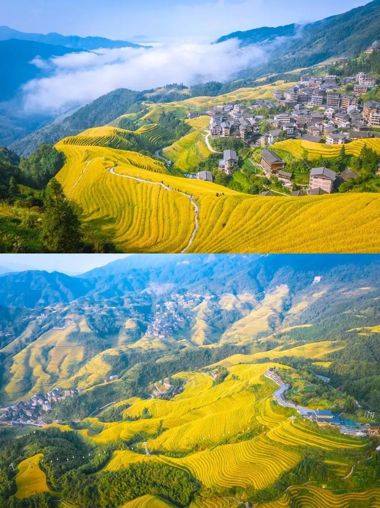 龙脊平安寨梯田有两大必看的观景点: