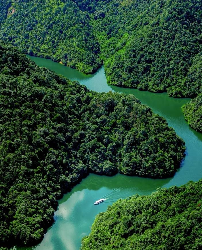 光有浪漫山色怎么够,三百山里还藏着一个绝美湖景。迎着微风,坐船游东风湖给你不一样的秋日旅行体验。乘着游船穿梭在群山之中,两岸的山色风光映入眼中。船行其中,山色也伴着游人一起前行。正应了那句诗“满眼风波多闪烁,看山恰似走来迎。仔细看山山不动,是船行。”