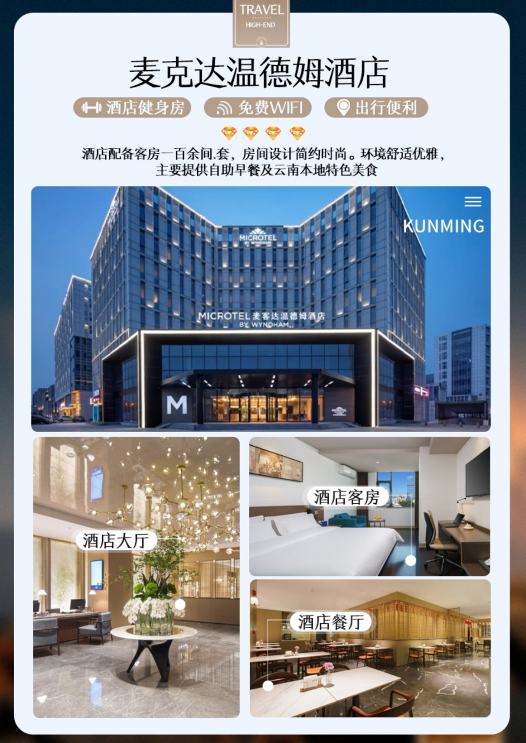 昆明4钻酒店:丽呈酒店、西驿酒店、美豪丽致酒店(机场店)、维也纳林湖酒店、金源国际酒店或者同级