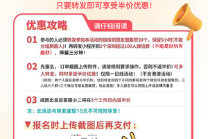 规则:转发深圳本土超100人社群保留3分钟优惠10元,下单上传截图,活动结束返现!