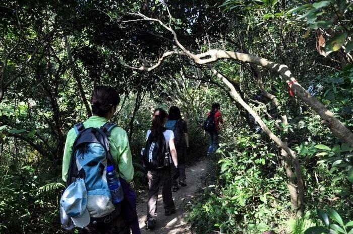 徒步鞋运动鞋、长袖衣裤、双肩背包,徒步禁止手提袋子,雨伞(有备无患)