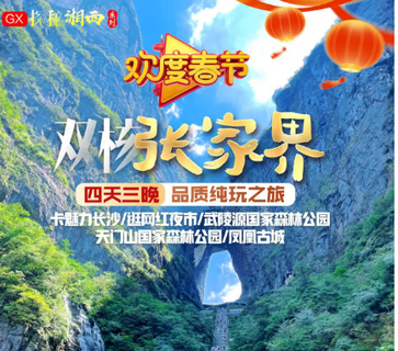 春节高铁【张家界4日】打卡魅力长沙/逛网红夜市/武陵源国家森林公园/天门山国家森林公园/凤凰古城