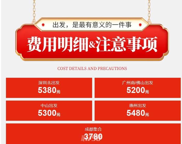 大交通深圳/广州/惠州/虎门往返,如需要飞机往返,机票自理或我社代出,按照成都集合价格报名;