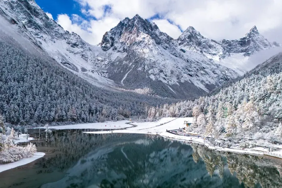 早起出发趁人少拍雪山海子大片,徒步磐羊湖、燕子岩窝(视体力而定),也可乘景区观光车+电瓶车深入,赏雪山、草甸、海子(秋季彩林层林尽染,冬季白雪皑皑),。感受川西高原的纯净。