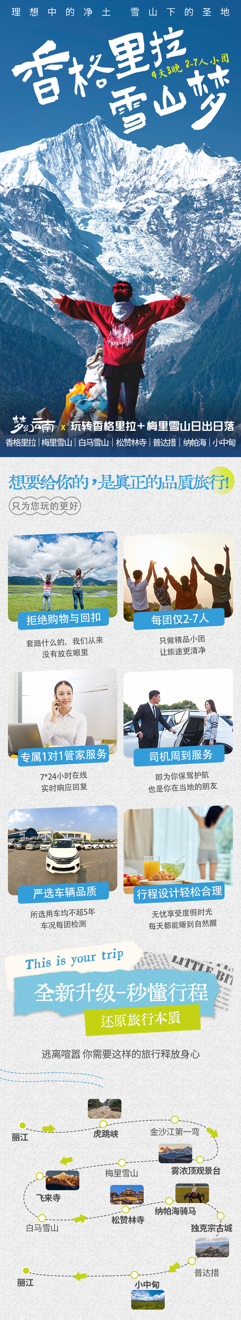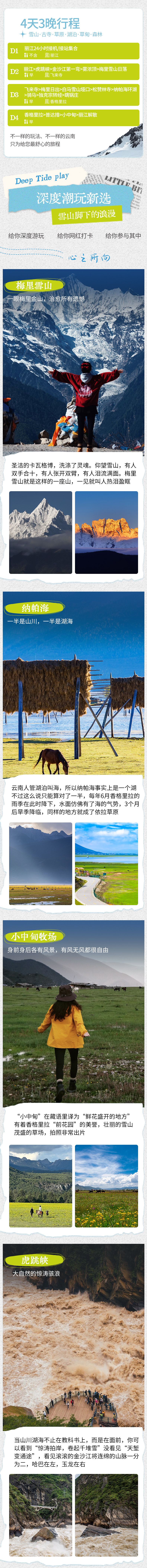 D2 丽江-虎跳峡-金沙江第一弯-雾浓顶-梅里雪山-飞来寺(约330KM,车程约5小时)