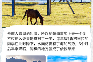 15:00 抵达【纳帕海】,这里是电视剧《司藤》的取景地,特意安排乘车体验环湖公路(夏季的纳帕海有机会可以感受到抖音爆火的水上公路,秋冬季节的纳帕海是不少候鸟的栖息地,有机会远观这些高原精灵们)。