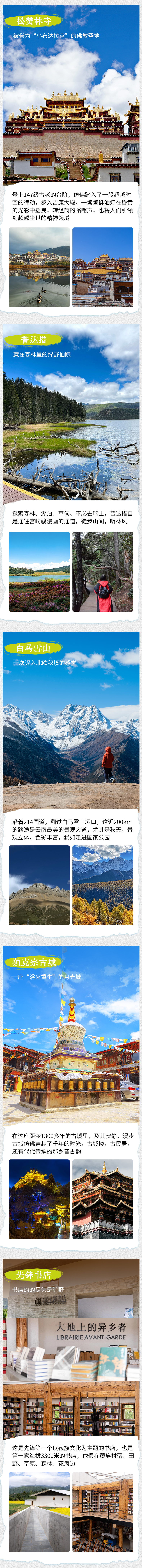 12:00 抵达【松赞林寺】,依山而建的松赞林寺外形和布达拉宫很相似,独特的五层藏式雕镂建筑,集藏族造型艺术之大成,又有“藏族艺术博物馆”之称。