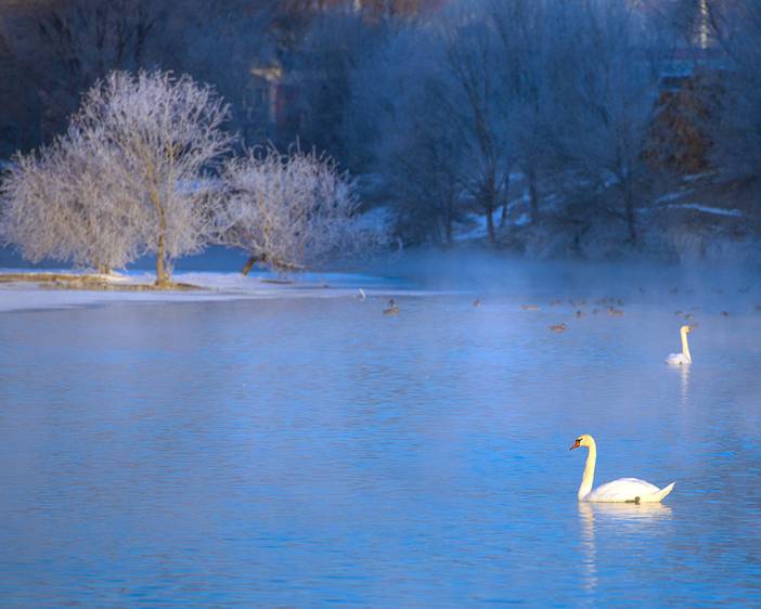 天鹅湖是伊宁天鹅泉最独特的景点之一,它是一个由天然泉水形成的然、深不见底的湖泊。湖水澄澈透明,四周环绕着壮观的高山,湖水中不时有游弋的天鹅和鸭子,冬季的天鹅泉别有一番景色,非常适合游客放松身心,享受大自然的美景。