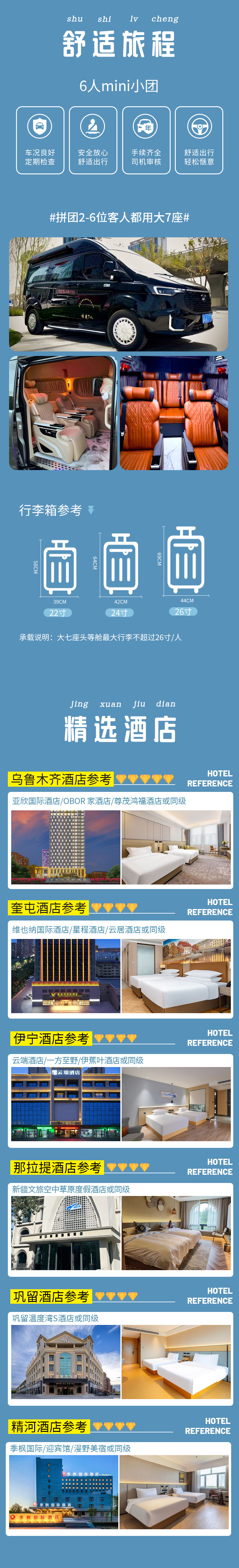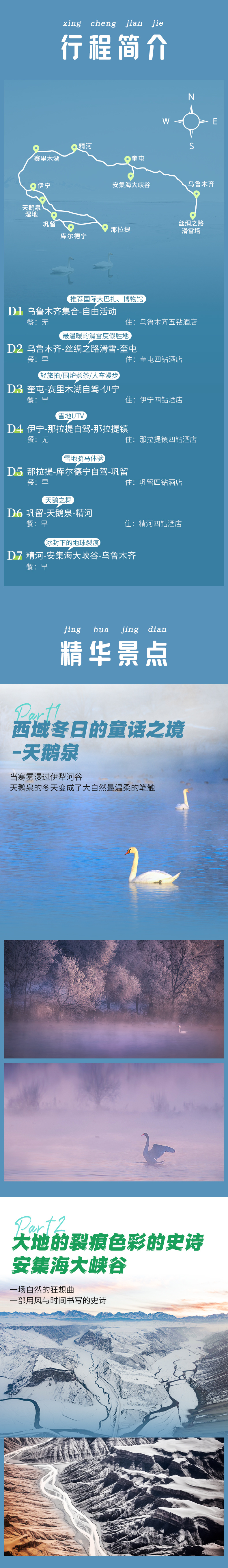 (如丝绸之路滑雪场未开放,行程改为天山天池景区)