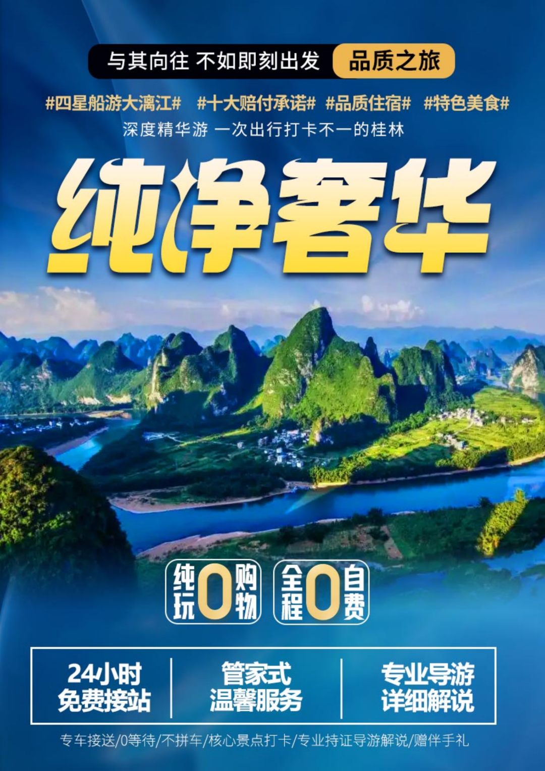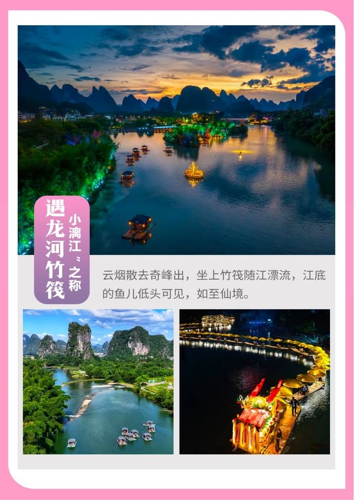 来桂林一定要游全景大漓江,必看小学课本里面的九马画山,专业团队设计,回归旅游本质-品质!品质!品质!给您一个放心的、地道的、独特的旅行体验,把一切旅行的烦心事都交给我们去操劳,而你只要轻轻松松的享受,此产品好评率超高哦!