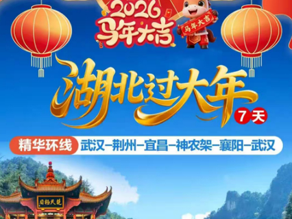 2026马年新春,鄂楚大地山水披红、文脉撞福!7天串联武汉、宜昌、神农架、襄阳,解锁「龙马精神」新春打开方式——逛古城、游江峡、探秘境,在非遗集市尝年味,在祈福法会迎好运,让春节既有山水壮阔,更有团圆温度!