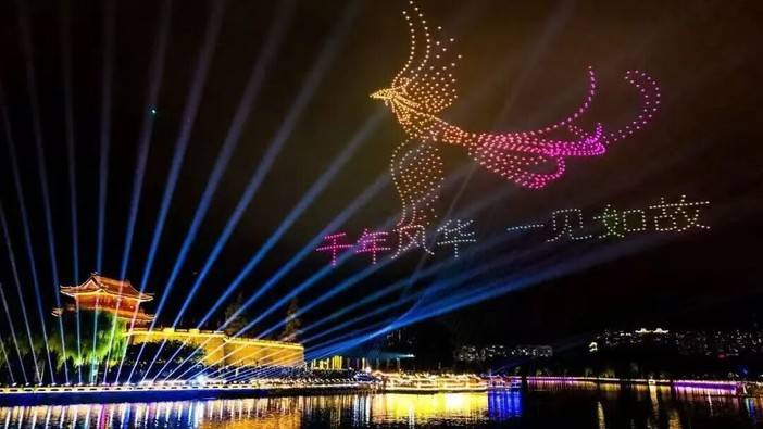 :古楼鎏金外衣配马形灯组,长江倒影美到窒息;夜游楚河汉街猜灯谜、投壶赢马礼,汉秀灯光秀惊艳刷屏