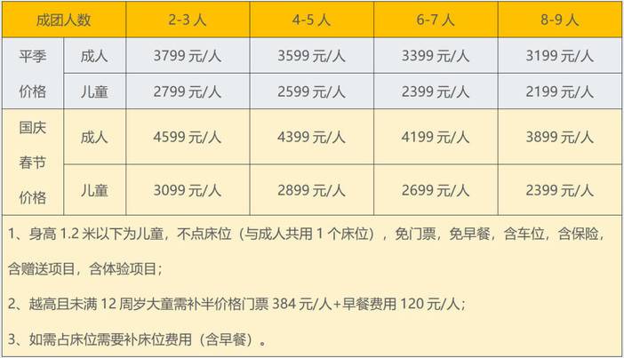 ▷越高且未满12周岁大童需补半价格门票384元/人+早餐费用120元/人;