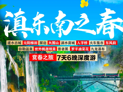 【醉美时节】:独家设计规划经典滇东南环线游,前往《庆余年》《舌尖》《三生三世》《爸爸去哪儿》等影视拍摄地,探秘滴水苗城—屏边小城,畅享罗平油菜花季,带您在最美的季节看醉美的风景。