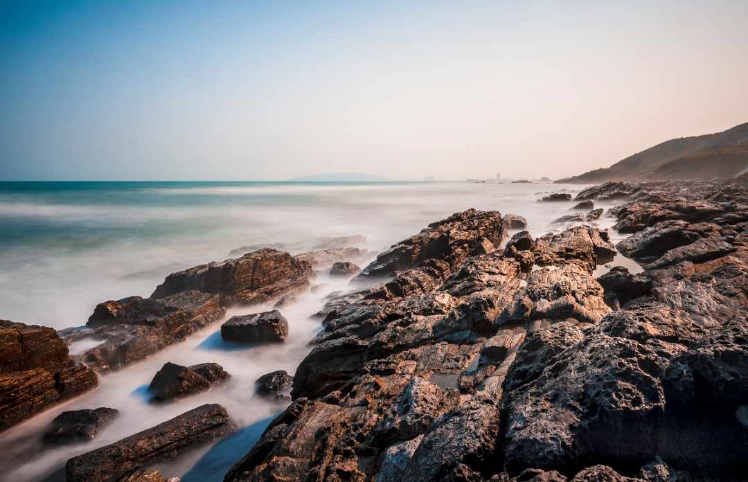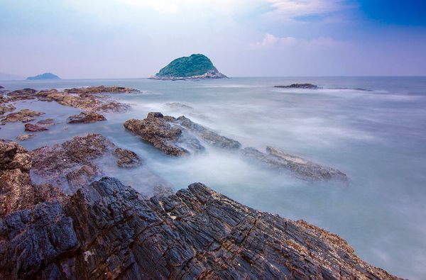 辽阔的大海 蔚蓝的天空 奇特的礁石