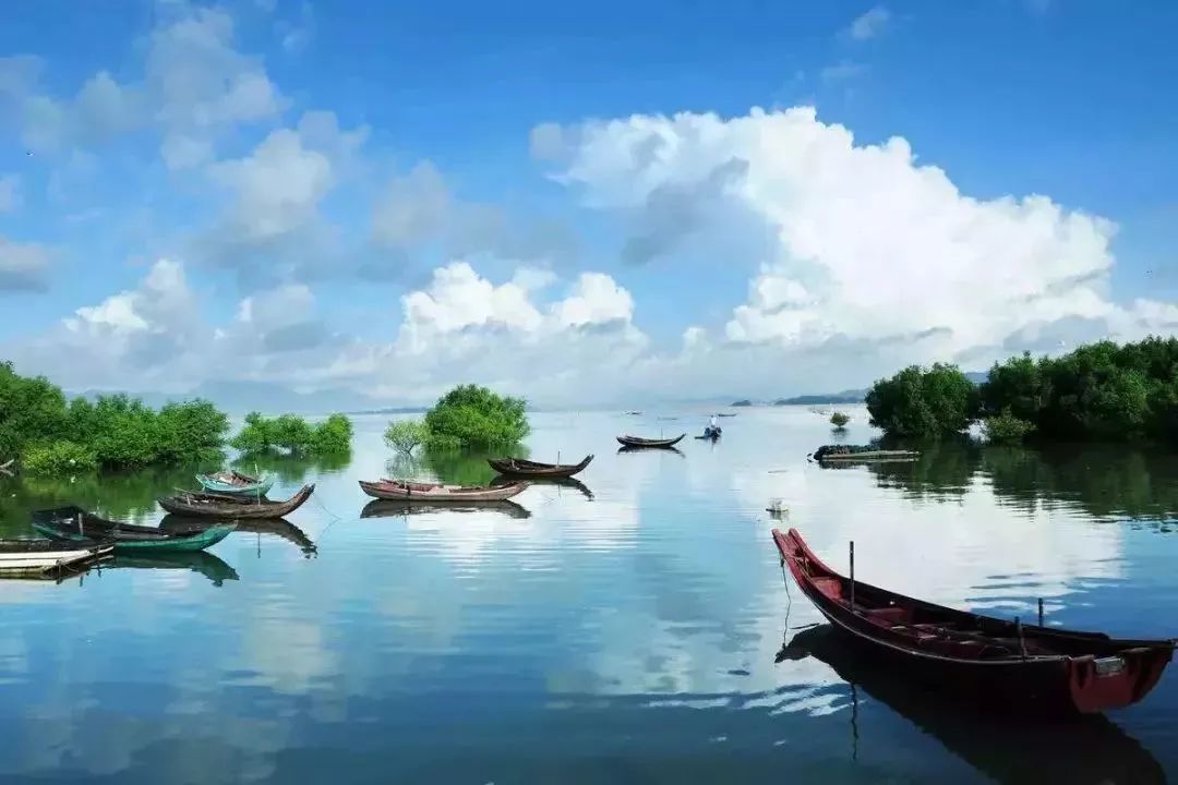 这片辽阔的红树林海湾蓝天白云下仿佛就是泸沽湖的草海一样宁静阔达,满眼的治愈