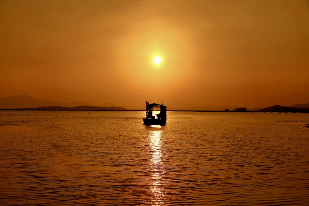 倘若有云彩遮住夕阳的话刹那间霞光万丈这个时候最适合拍剪影张张都是大片的!