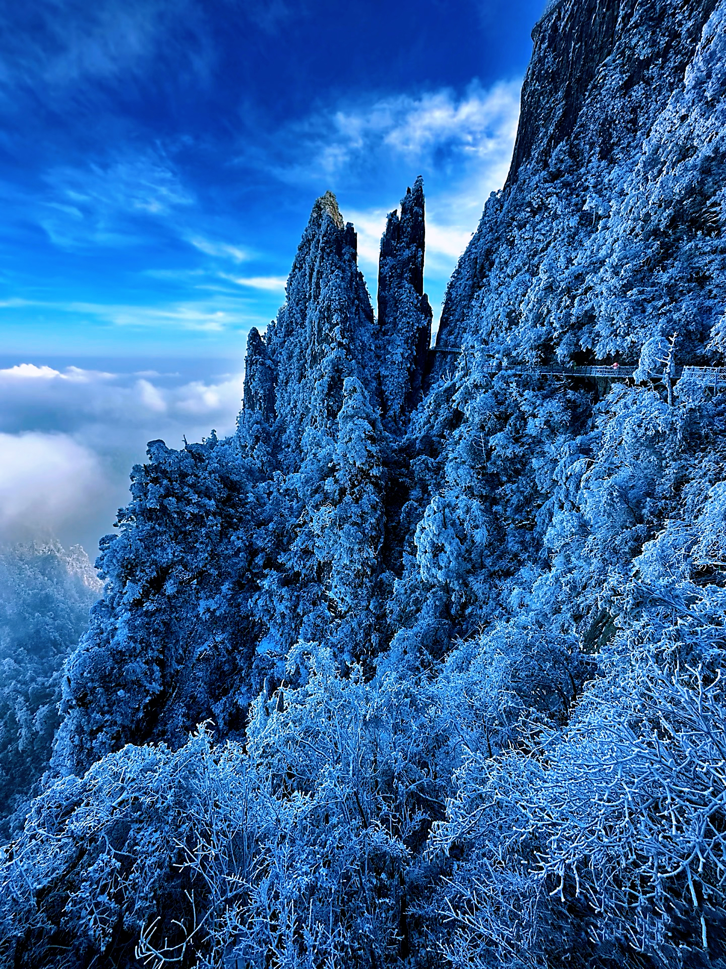 13:00左右到达云冰山风景区,乘景区环保车前往南国雪乡之称的【云冰山景区】于湘粤交界的云冰山,以云海,冰雪奇观而得名,一览众山小的梦幻云海,奇特冰挂堪称一绝;每年的"雾凇 雪淞 雪景"奇观轮番上阵,素有南方"北国风光"的美誉(另外说明:如遇道路结冰等恶劣天气 ,景区为安全起见,云冰山中转车可能暂停且费用没的退,徒步上顶约3公里40分钟左右);