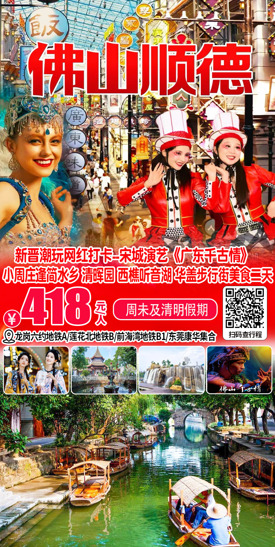 (周末及假期)新晋潮玩网红打卡--佛山宋城演艺《广东千古情》、西樵听音湖、顺德逢简水乡、清晖园、华盖步行街二天 458,深圳/东莞