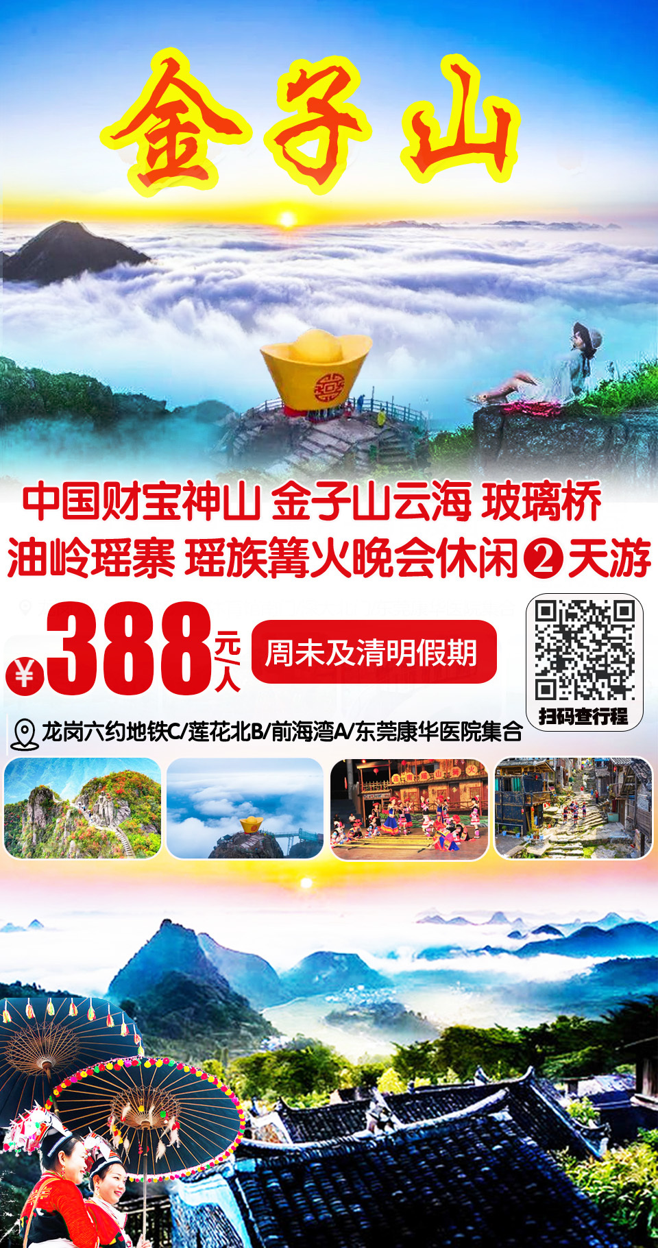 (周未及假期)中国财宝神山金子山杜鹃花、云海、玻璃桥、油岭瑶寨、瑶族篝火长桌宴、万山朝王二日游