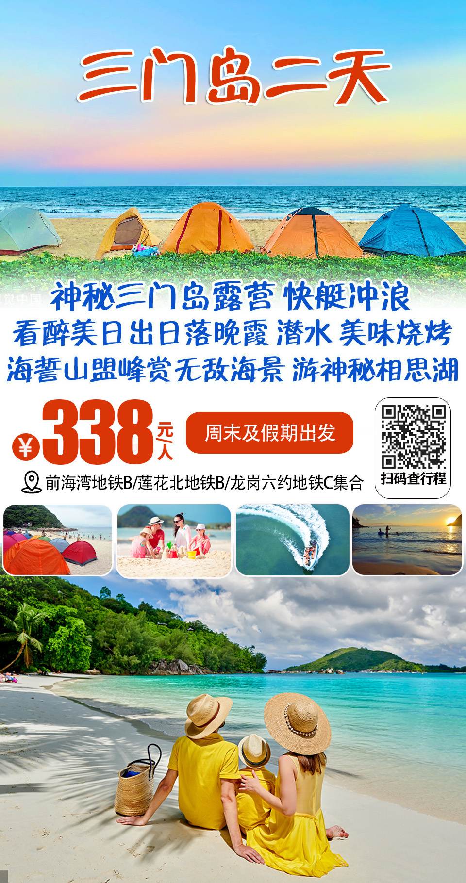 (周末及假期)神秘三门岛露营、快艇冲浪、看醉美日出、晚霞、烧烤、潜水、海誓山盟峰赏无敌海景二日游338