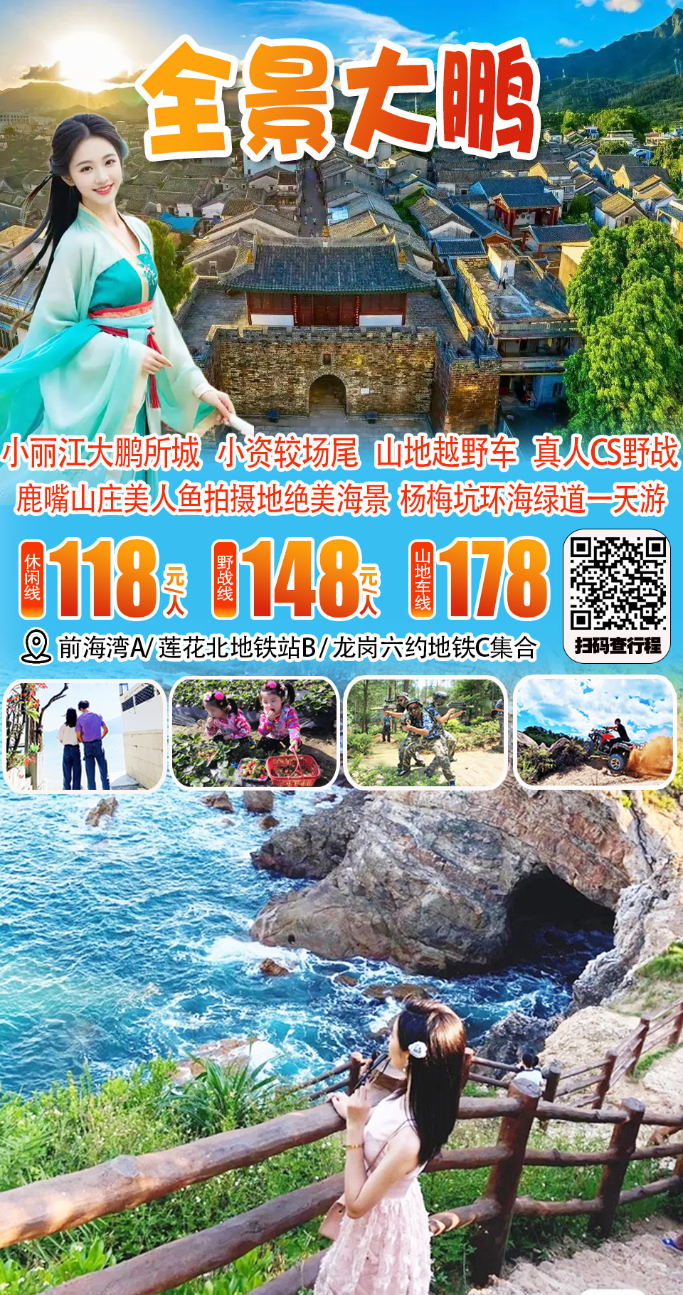 (周末及假期)杨梅坑美人鱼拍摄地无敌海景、大鹏古城、小资较场尾、山地越野车、CS野战一日游118