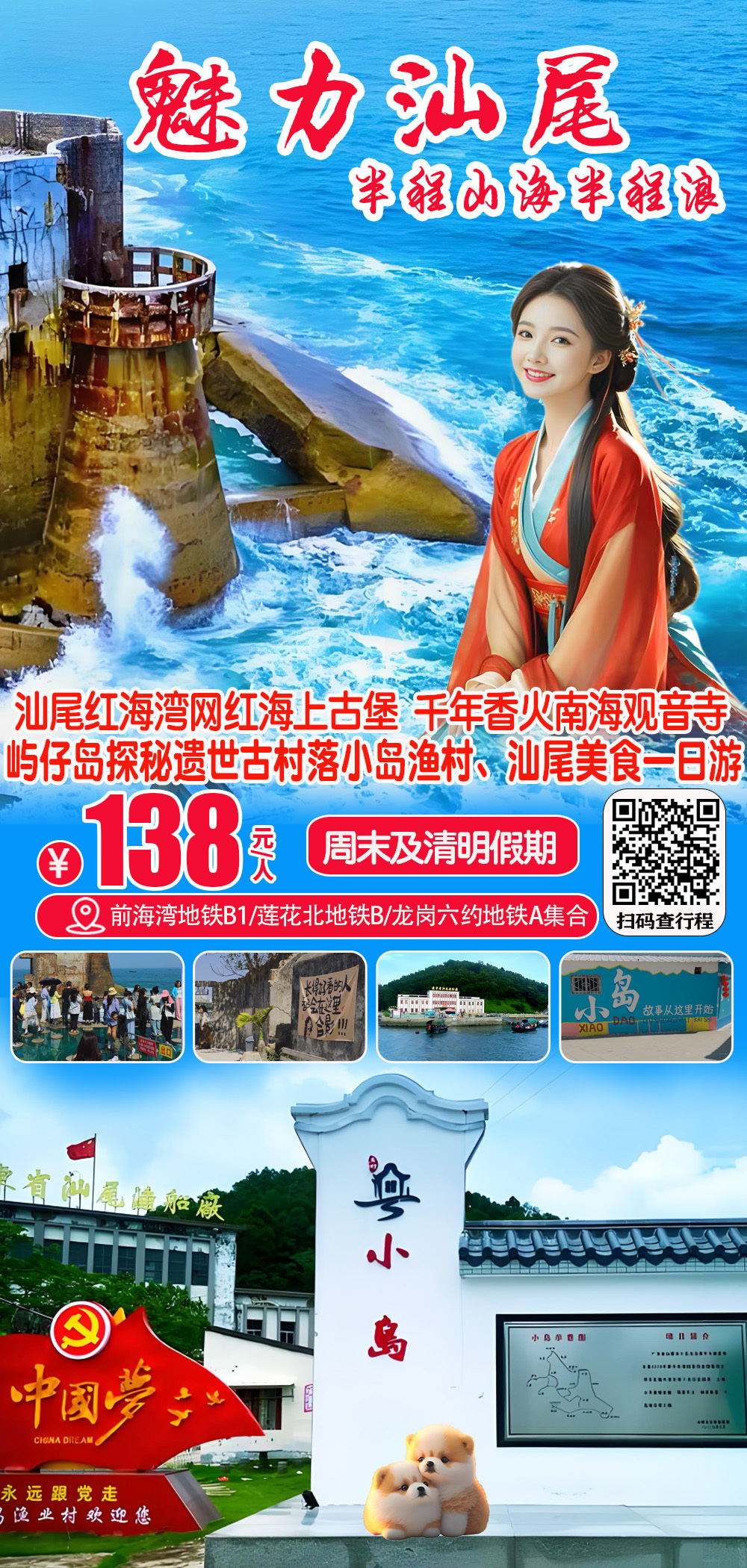 (周末及假期)汕尾红海湾网红海上古堡、探秘遗世古村落小岛渔村、千年香火南海寺一日游138