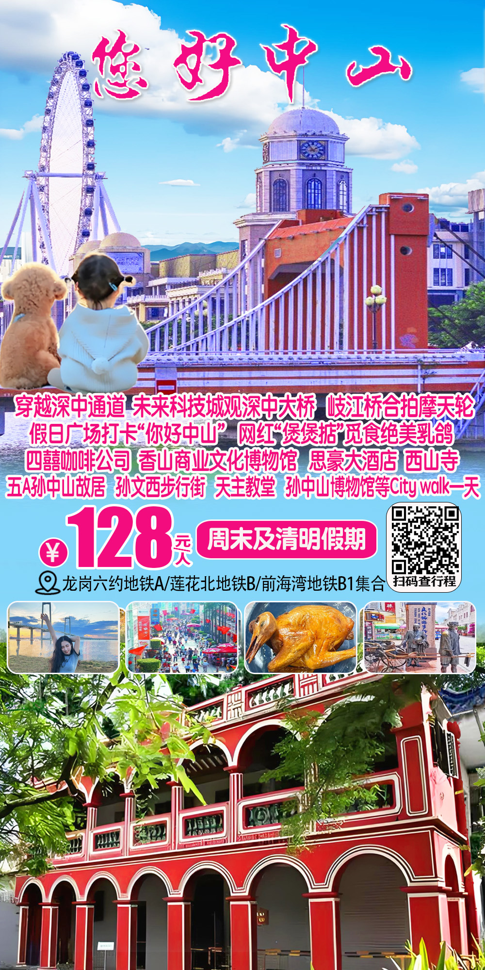 (周末及假期)穿越深中通道、湾区未来科技城合影深中大桥、孙中山故居、假日广场、煲煲掂、岐江桥 四囍咖啡公司 香山商业文化博物馆 思豪大酒店、孙文西步行街、西山寺、天主教堂、孙中山博物馆等City walk一天 128