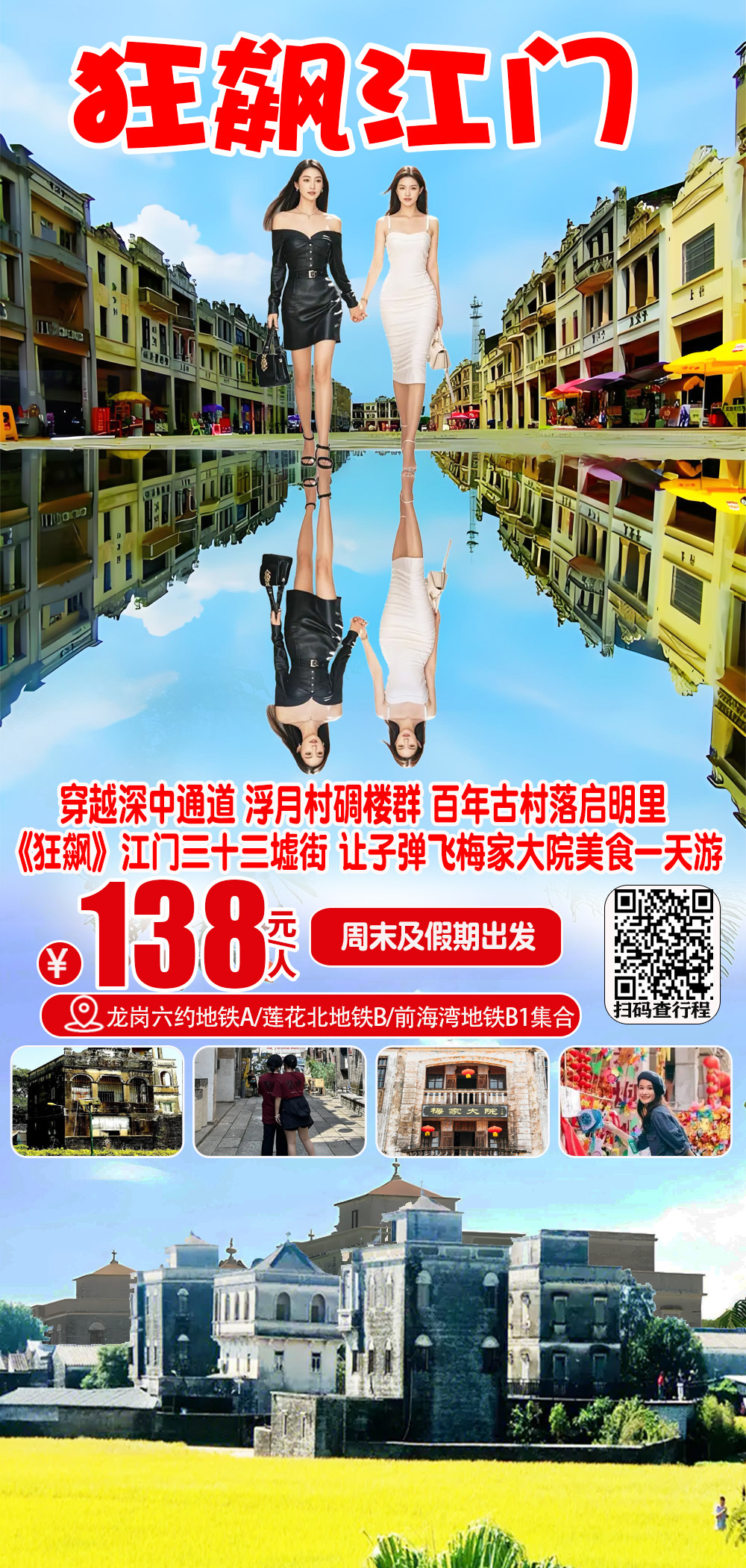 (周末及假期)穿越深中通道 一路狂飙 江门三十三墟街 梅家大院 浮月村碉楼群 百年古村落启明里一天游 138