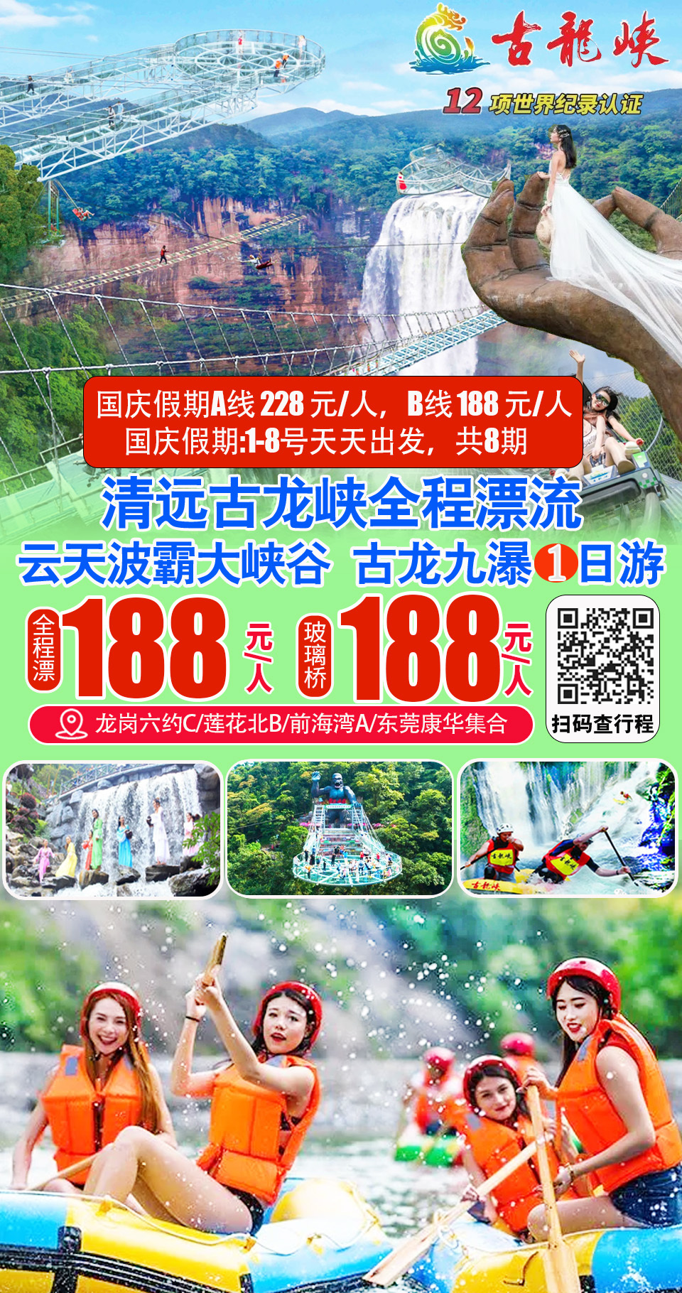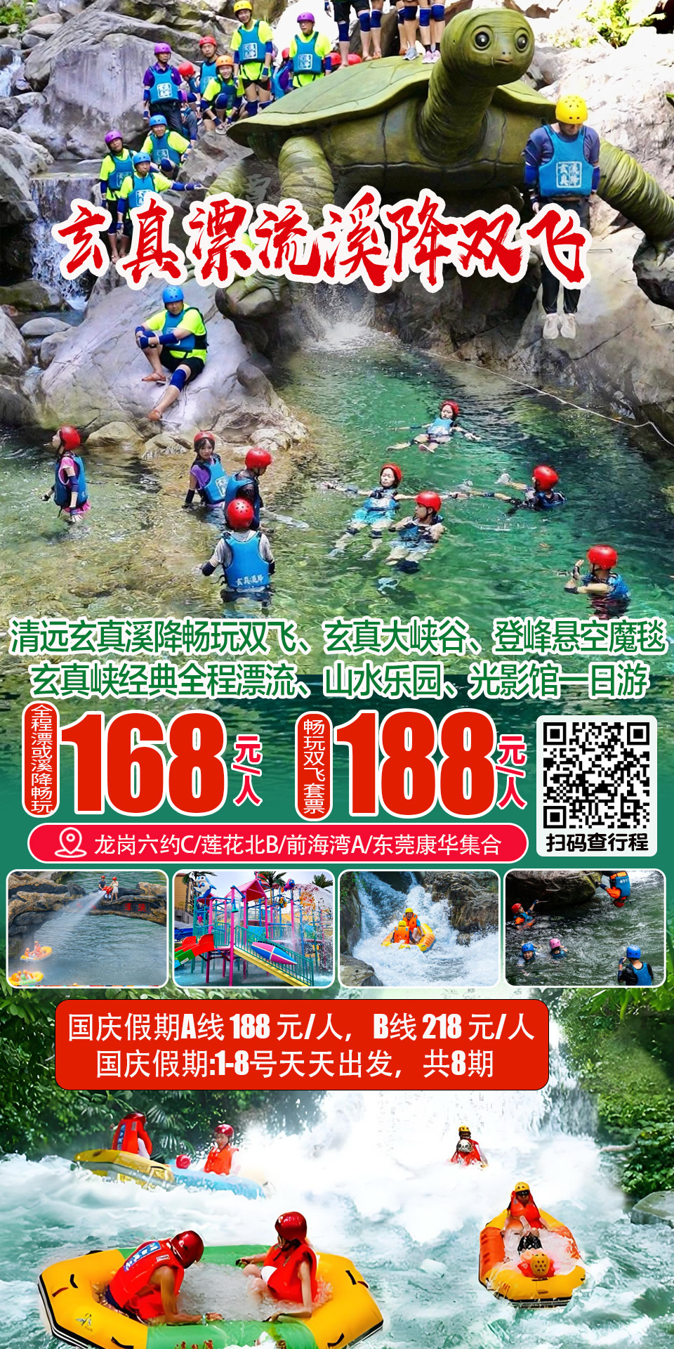 (周末及假期)清远玄真经典全程漂、溪降畅玩双飞、玄真大峡谷、登峰悬空魔毯、山水乐园、光影馆一日游